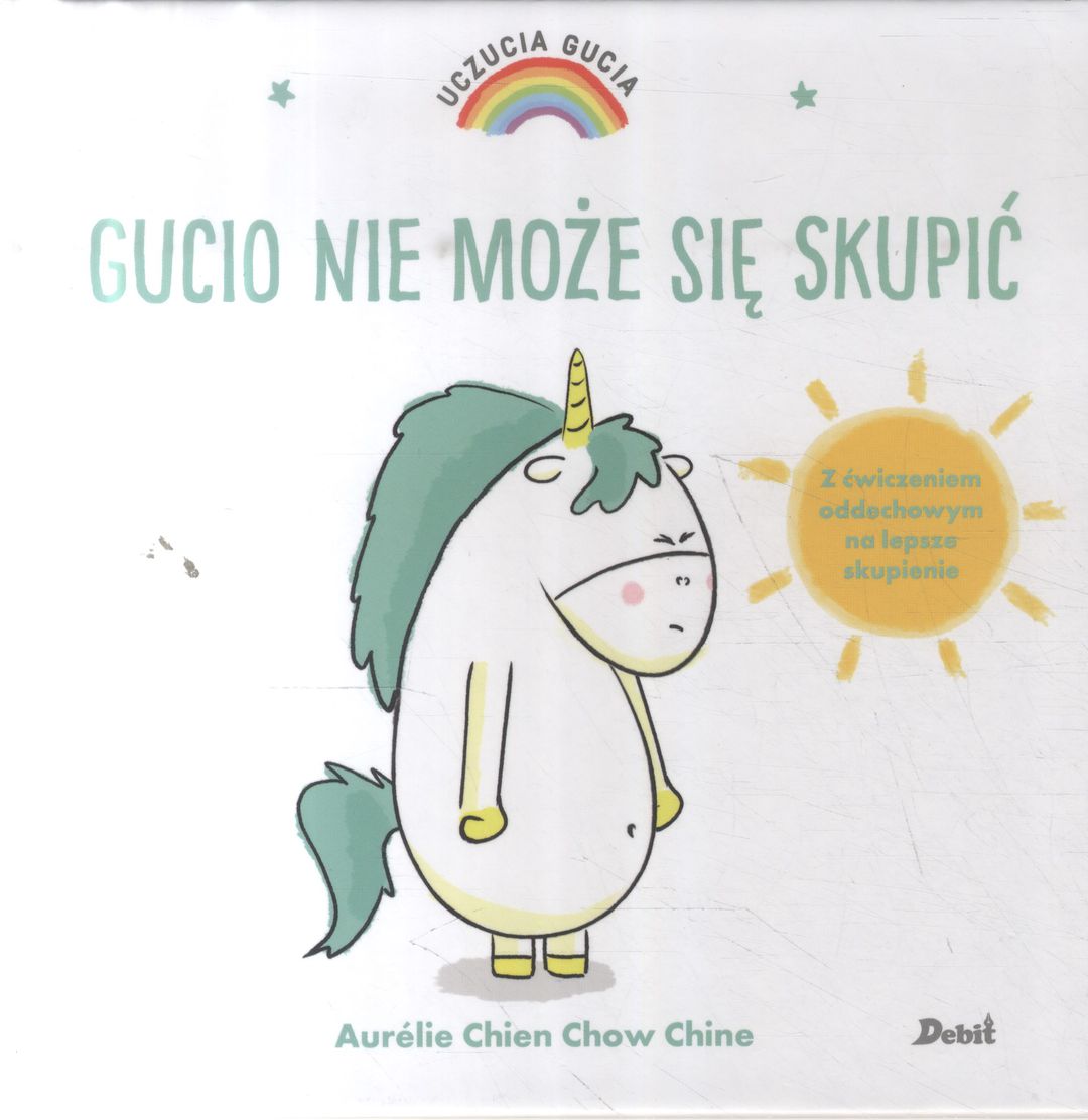 Gucio to mały jednorożec taki jak wszystkie. Albo prawie… Jego tęczowa grzywa zmienia kolor zależnie od tego, co Gucio odczuwa. Seria historyjek, które uczą nazywania emocji i panowania nad nimi. W każdej książeczce opisano jedno uczucie. Na końcu historyjki znajdują się bardzo proste ćwiczenia, które pomogą dziecku wyciszyć się i zapanować nad emocjami.